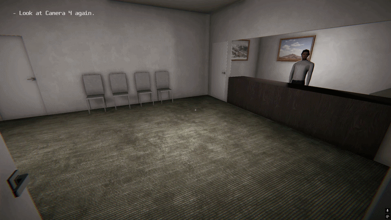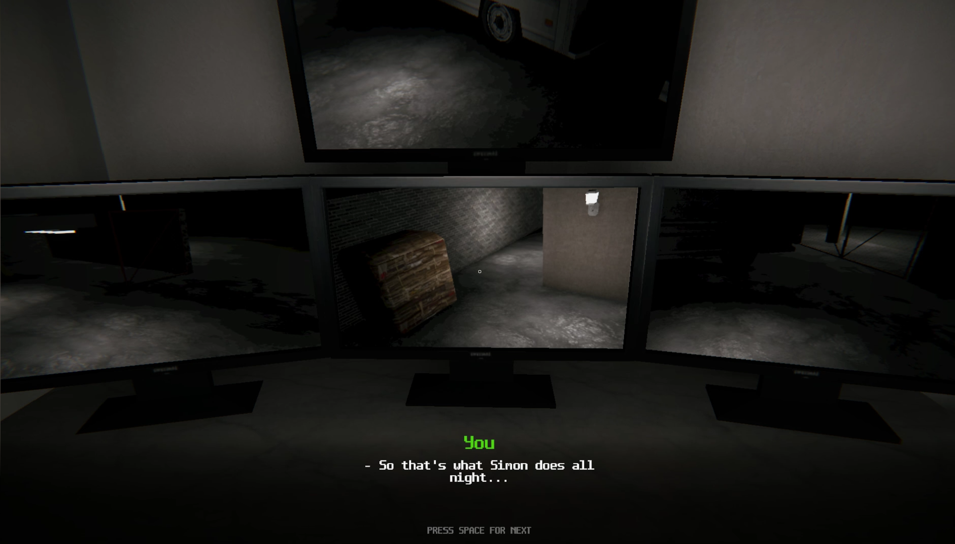 Sitting alone, watching the cameras, everything seems normal, until you start realizing that the real danger isn’t around you… but out there, with him.